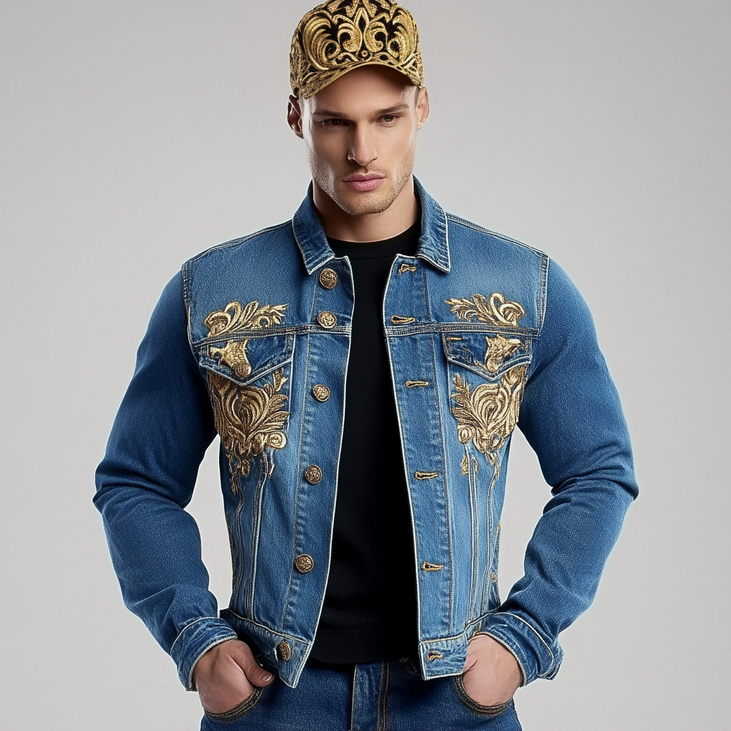 Today the exclusive AURUM brand presents a unique fusion of royal gold totem embroidery with contemporary denim jackets, creating a harmonious blend of tradition and modernity. This unexpected combination transcends mere fashion, embodying a powerful symbol of cultural synthesis and bridging the gap between past and present.